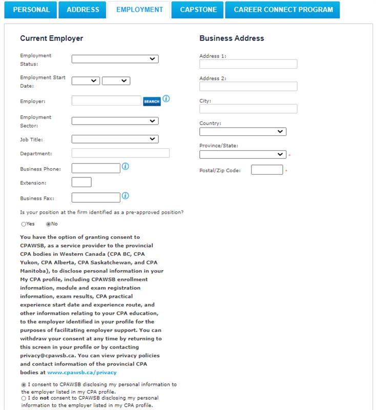 It is important to keep your employment information up-to-date in your My CPA Portal profile. You must also update your employment information in the CPA PERT system within 90 days of starting or changing employment. For information on practical experience/PERT, please contact your provincial CPA body.